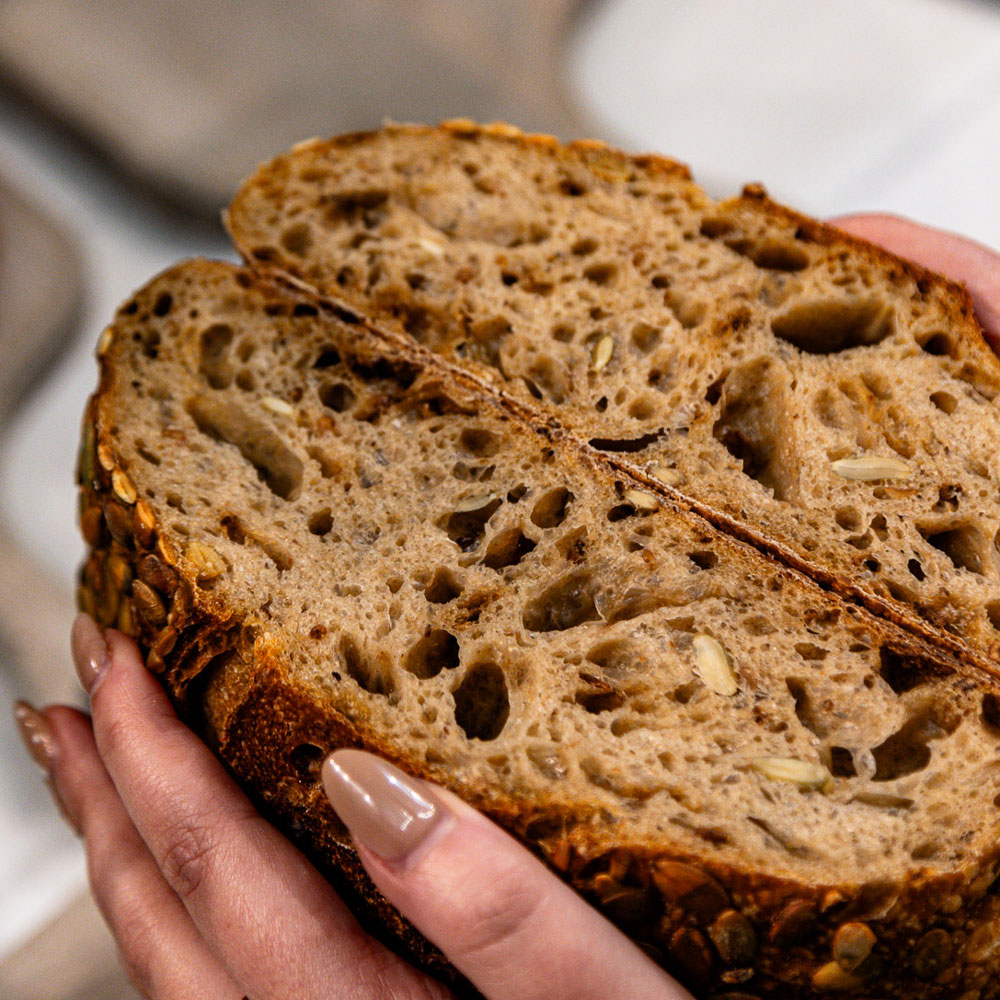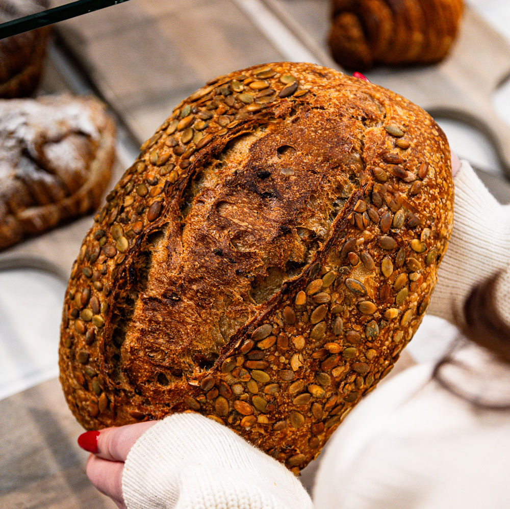 A sourdough loaf made with a blend of malthouse flour and a generous mix of seeds. Perfect for sandwiches or toasting.